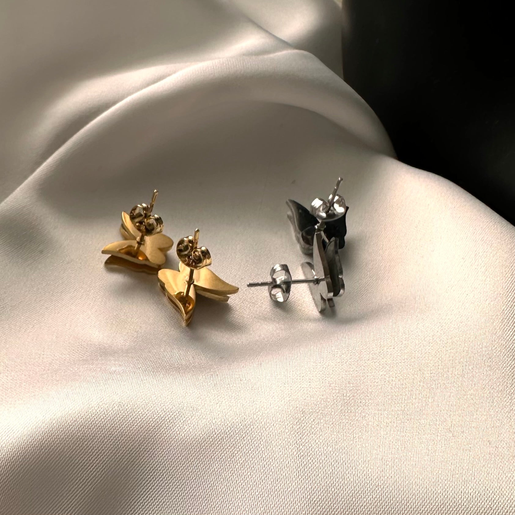 3D Butterfly Earrings Satin and Shiny Gold Plated
