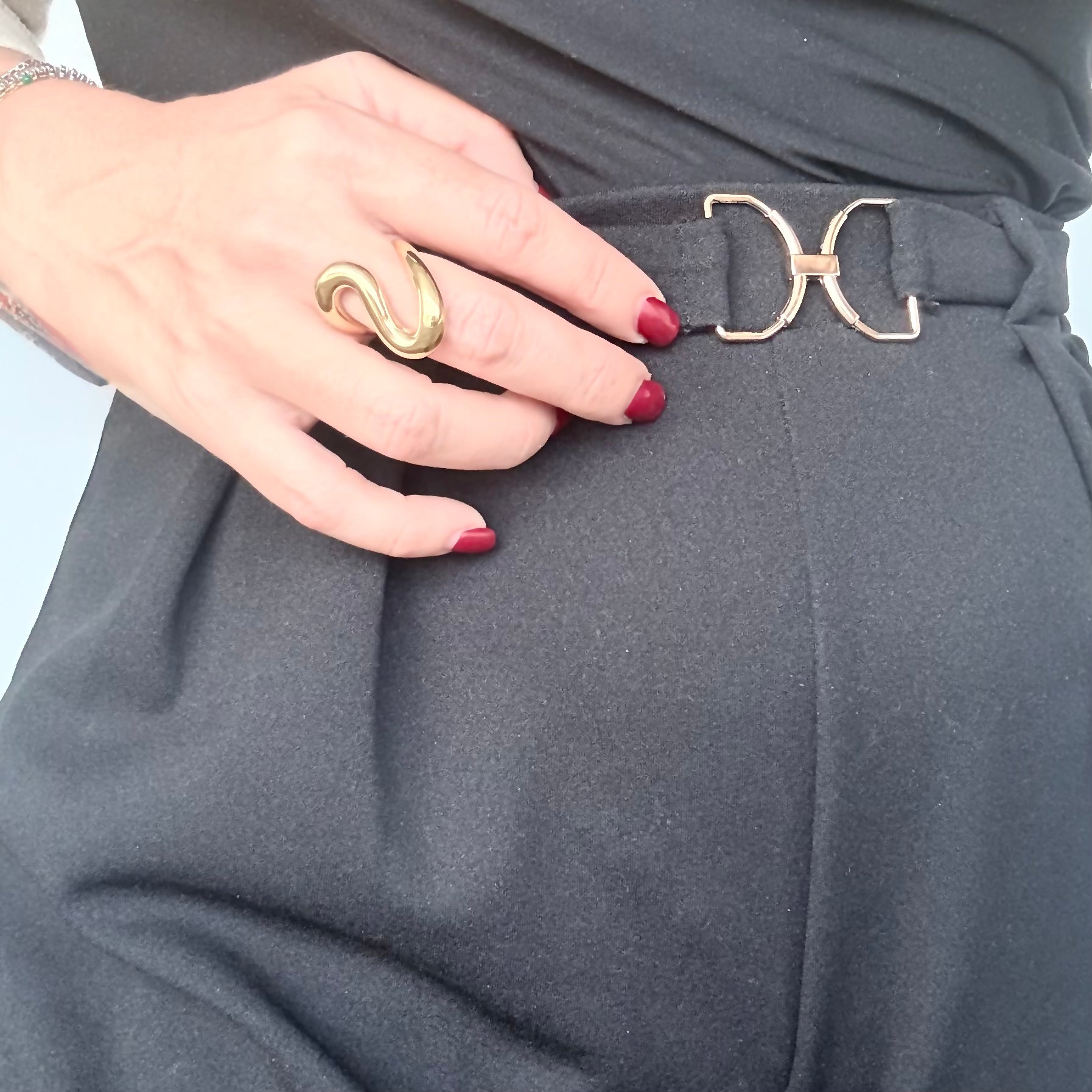 L' "Anello Scultura" dal design fluido incarna la Forza Interiore, la Saggezza e la Rinascita. Rappresenta il tuo potere di trasformazione. Realizzato in acciaio inossidabile di alta qualità, è un gioiello fatto per durare, resistente all'acqua e al tempo. Ideale per festeggiare un'amicizia, un traguardo o semplicemente per ricordare a te stesso che l'armonia è già dentro di te.