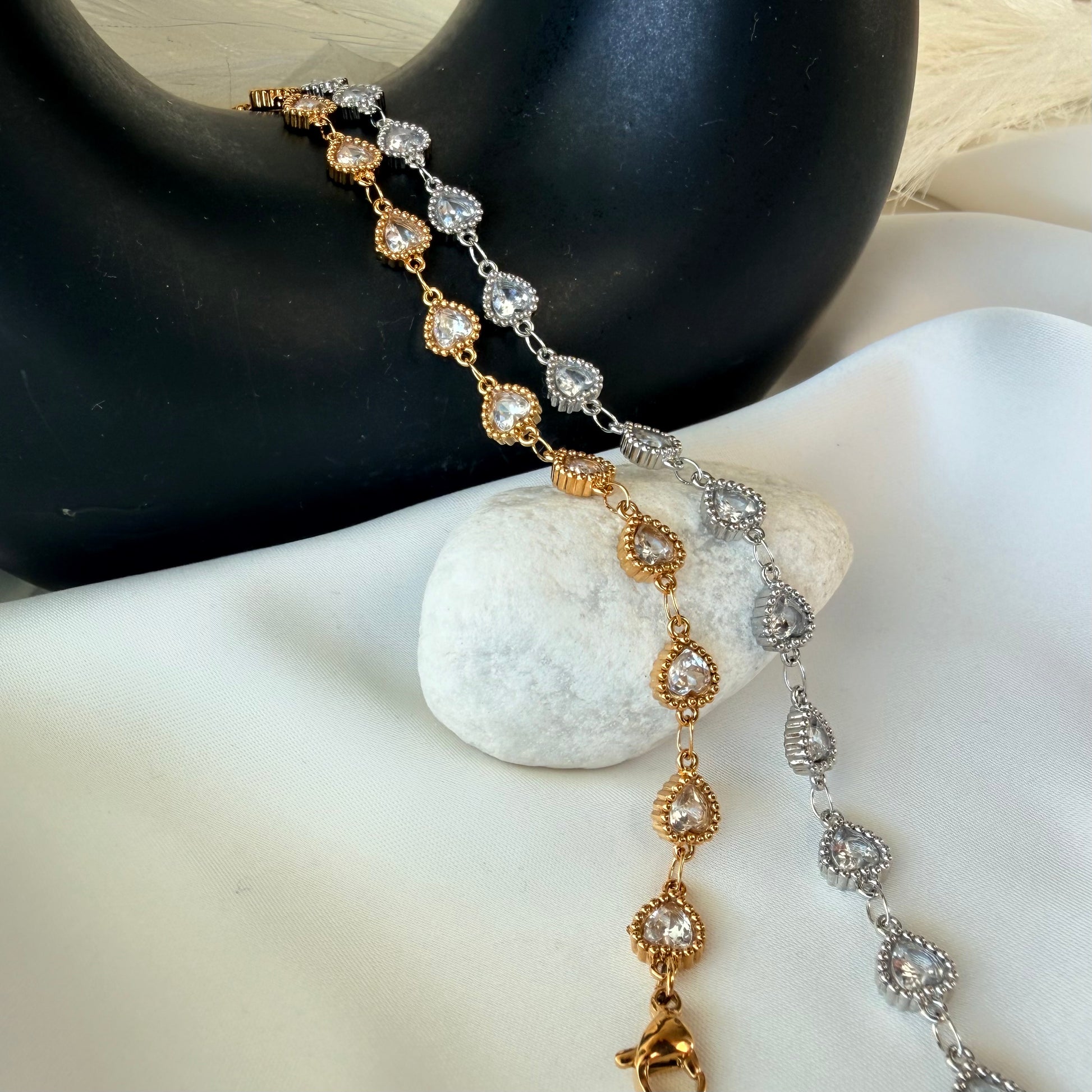 Bracciale Tennis 13 Cuori, non è solo eleganza, è il diario delle tue sensazioni. Ogni cuore scintillante rappresenta un momento di emozione talmente grande da aver fatto battere il tuo cuore più velocemente. Questo gioiello è una celebrazione della vita e delle passioni che hai provato. Realizzato in acciaio inossidabile di alta qualità, è un gioiello fatto per durare, resistente all'acqua e al tempo. E il regalo perfetto per chi desidera indossare la propria storia d'amore ogni giorno.