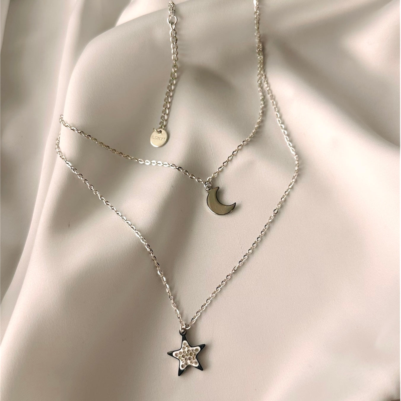 La stella è il tuo faro personale: un simbolo di speranza e ispirazione che ti ricorda di brillare sempre. La luna rappresenta la tua intuizione e i nuovi inizi, un omaggio ai cicli della vita e alla tua forza interiore. Realizzato in acciaio inossidabile di alta qualità, è resistente all'acqua e al tempo. È il regalo perfetto per chi ama sognare.