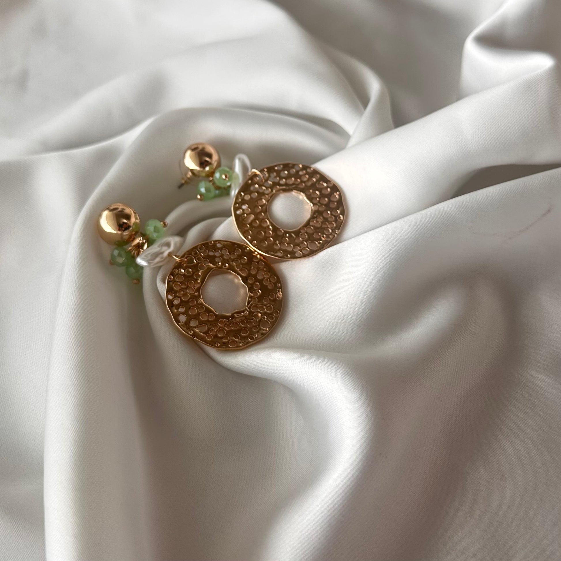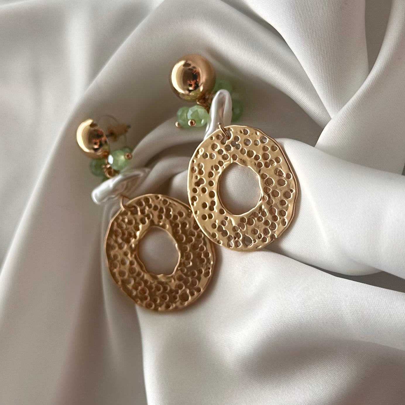 Eleganza naturale e freschezza estiva si incontrano in questi raffinati orecchini pendenti. Realizzati con perle bianche luminose e corallini verdi vivaci, sono montati su una delicata struttura a cerchio stile “golf”, completamente senza nickel, ideali anche per pelli sensibili.