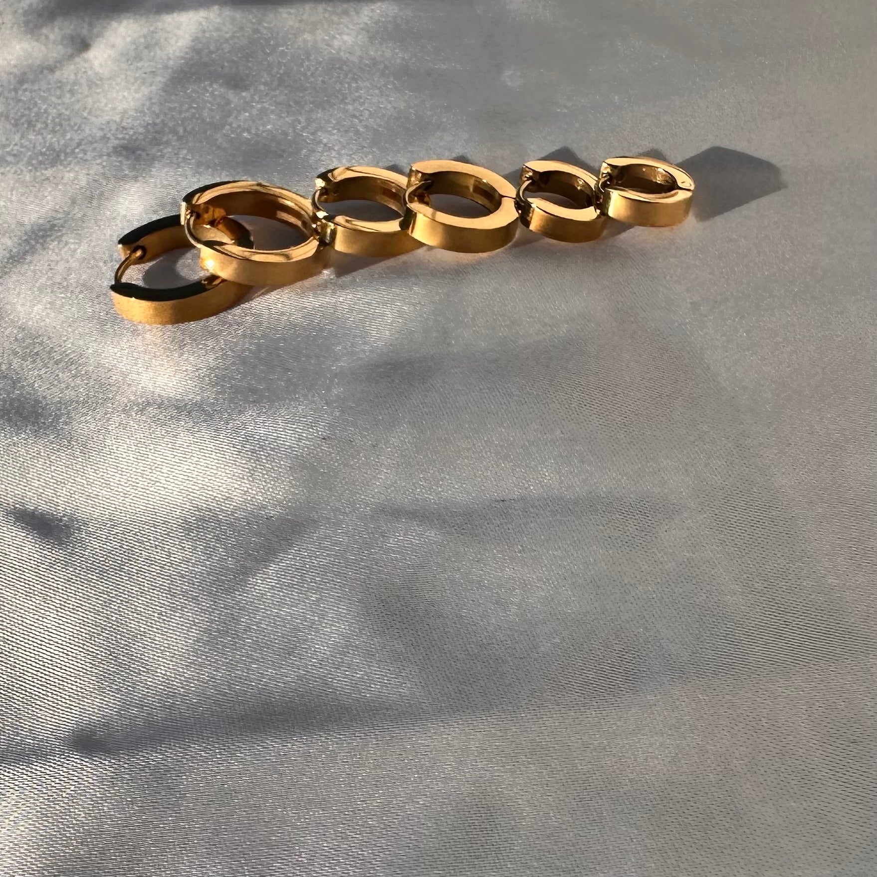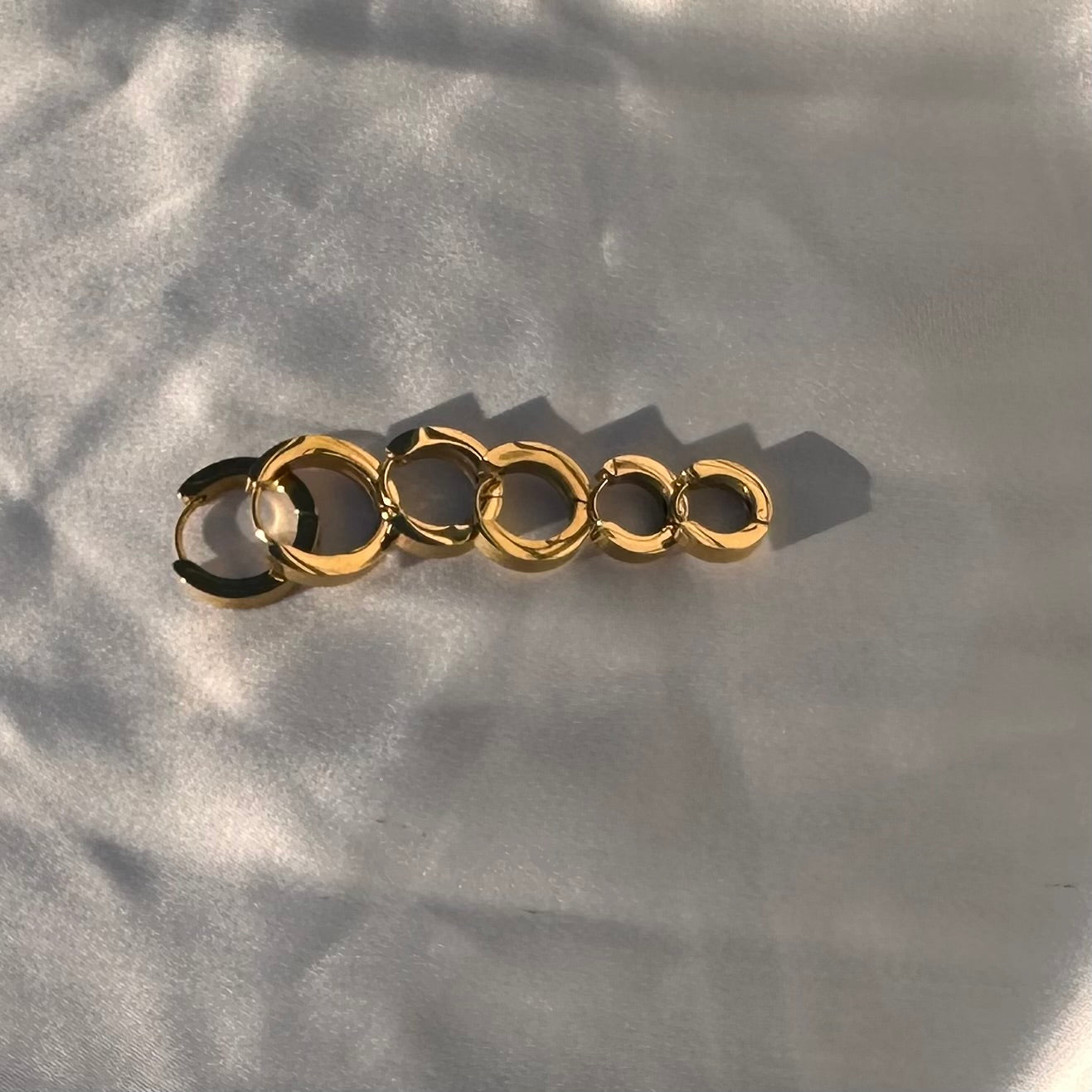 Dai un tocco unico al tuo look con questo elegante tris di orecchini in acciaio inossidabile, ideale per chi ama accessori versatili e resistenti.