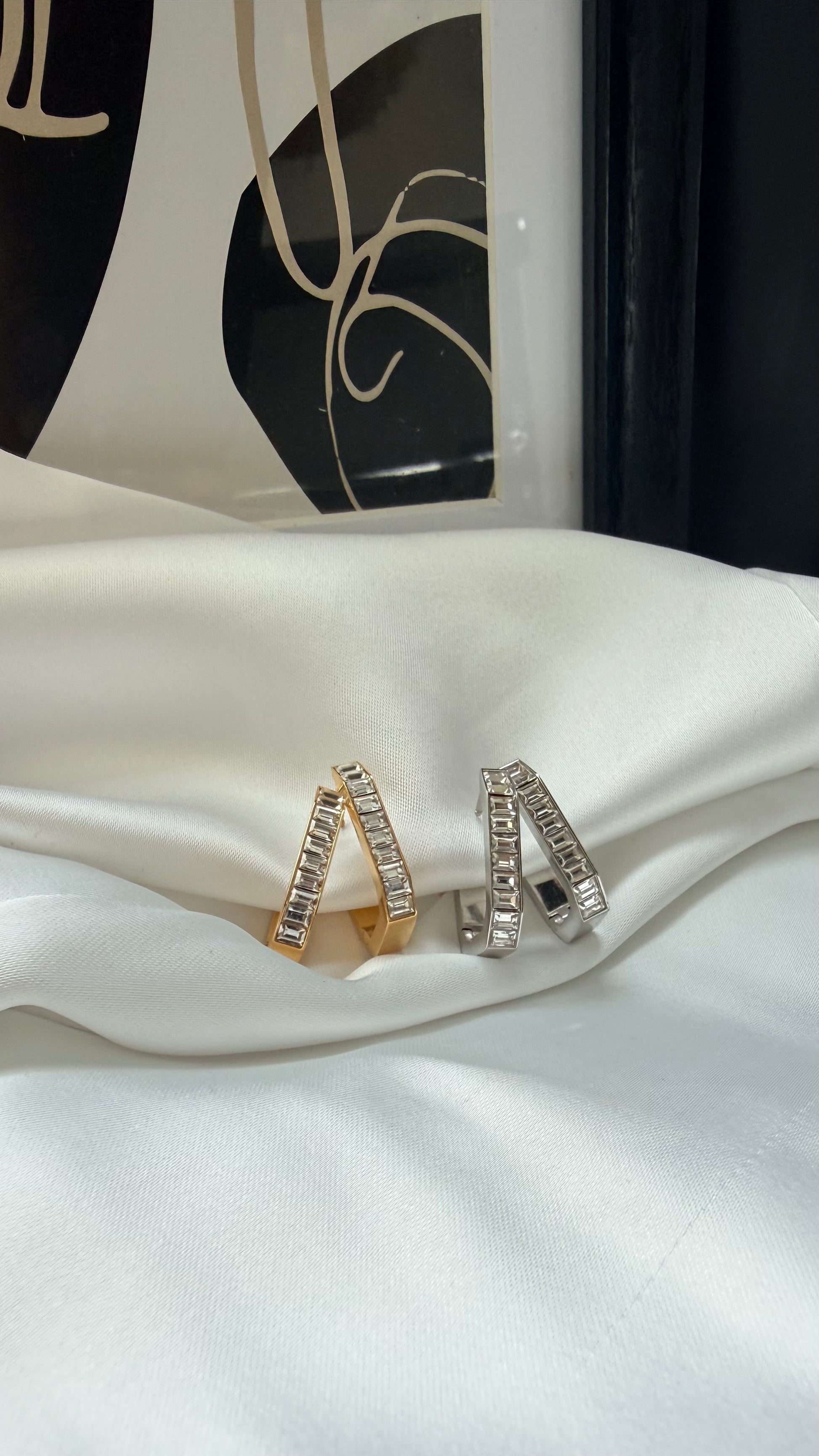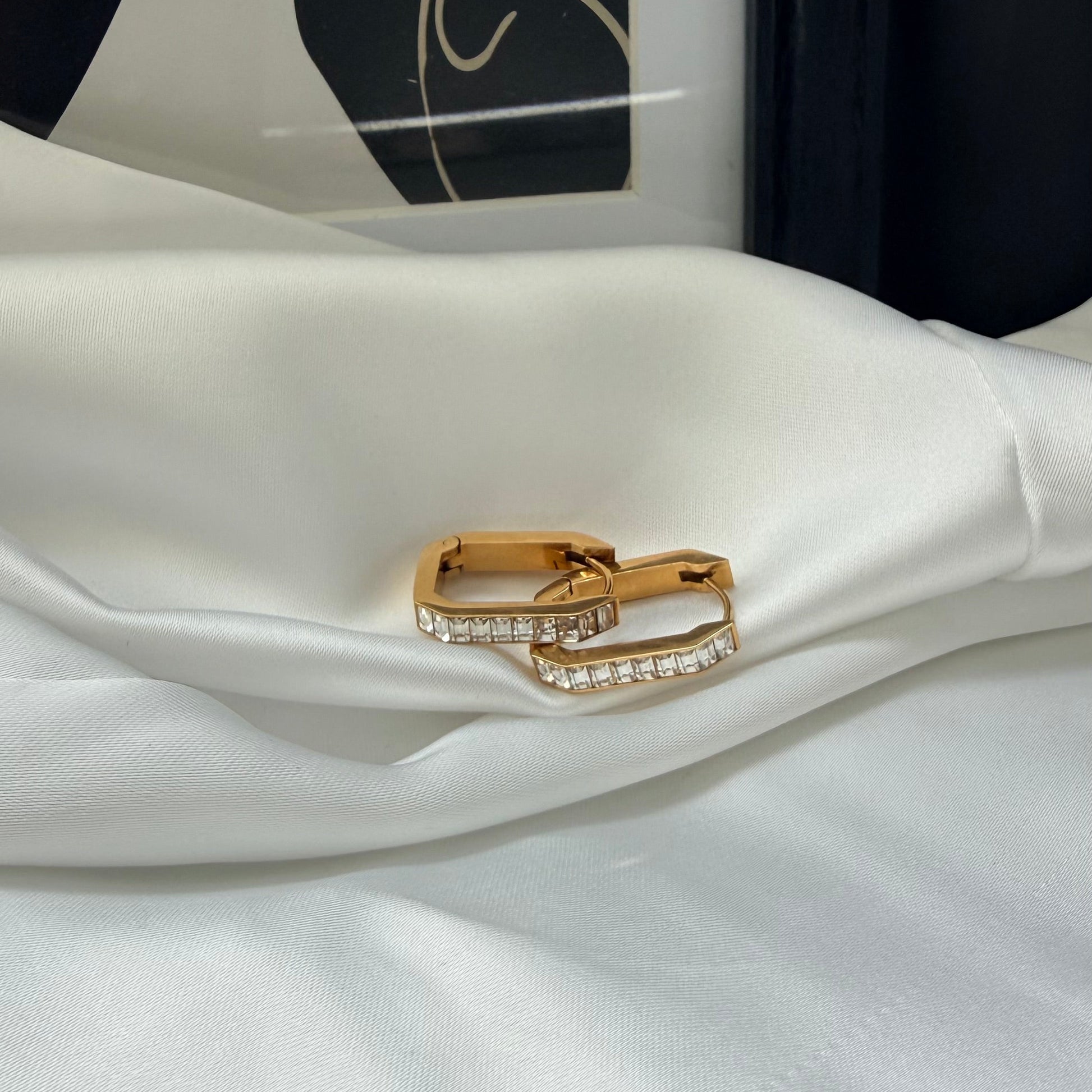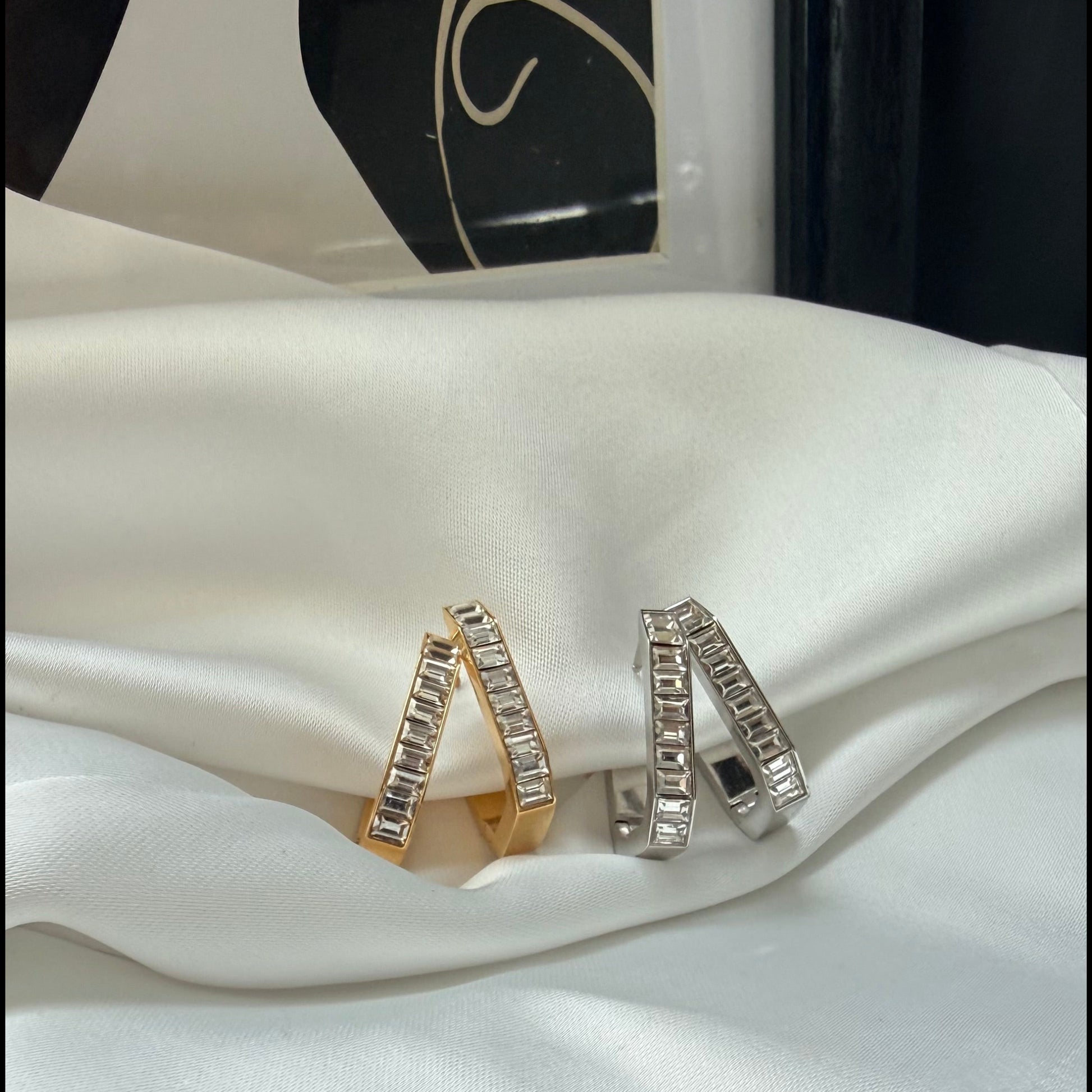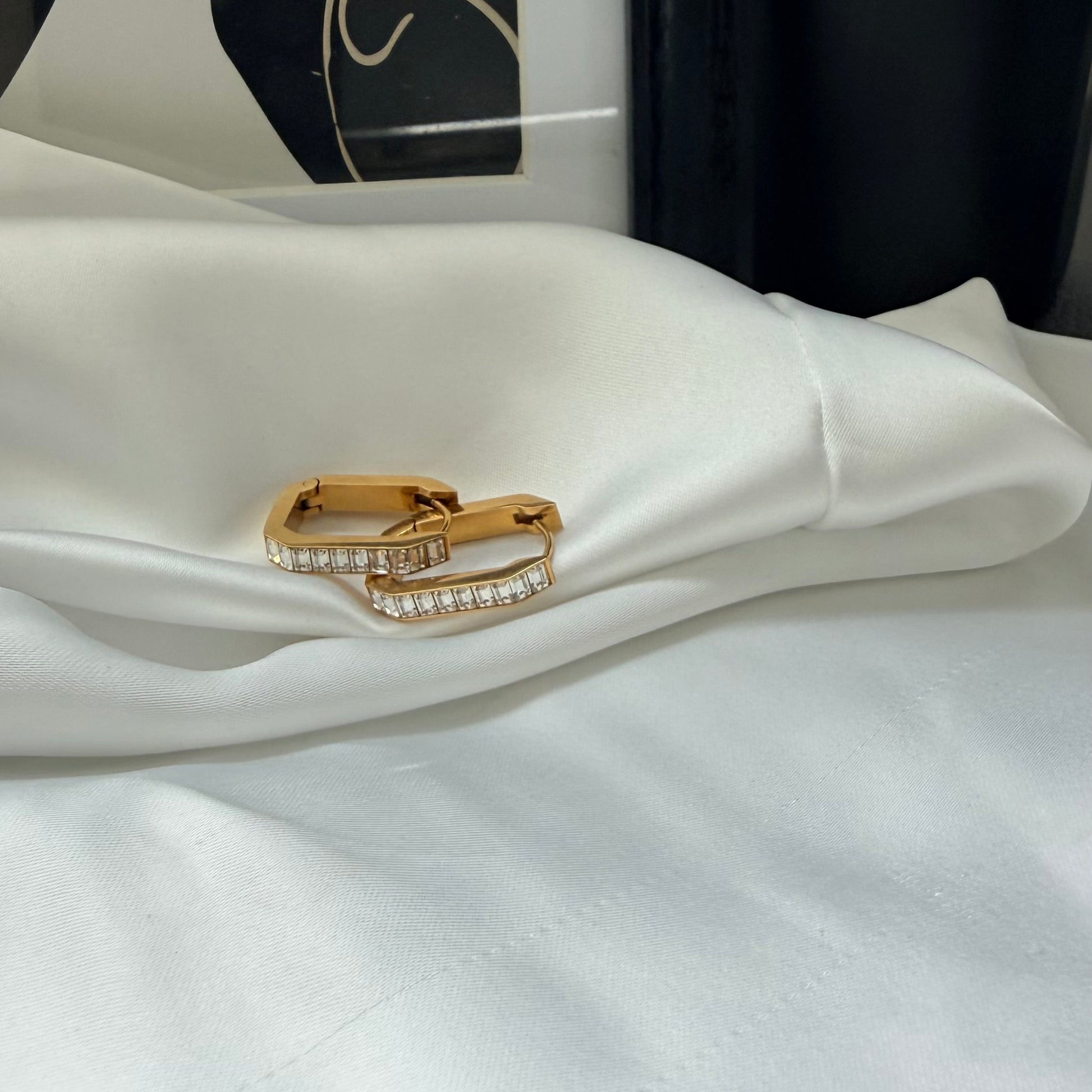 Orecchini Rettangolari Baguette rappresentano l’equilibrio perfetto. Ogni singolo cristallo baguette è un frammento della tua anima: ogni pietra simboleggia un momento prezioso, un sogno o una vittoria che ti appartiene. Realizzato in acciaio inossidabile di alta qualità, è un gioiello fatto per durare, resistente all'acqua e al tempo. Ideale per festeggiare un'amicizia, un traguardo o semplicemente per ricordare a te stesso che l'armonia è già dentro di te.